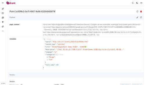 これは、なにをしたくて書いたもの? 先日、Qdrantをインストールしてみました。 Ubuntu Linux 22.04 LTSにベクトルデータベースQdrantをインストールして試す - CLOVER ここからどう進めたものか、というところなのですが、Quickstartの最後にチュートリア…